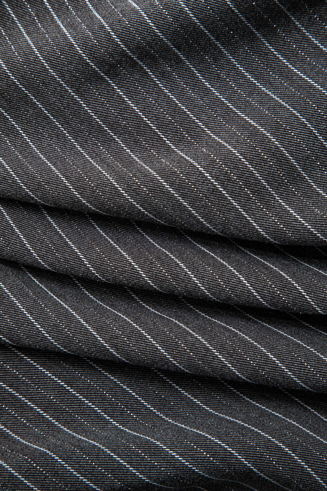 Ce haut off-shoulder avec des rayures subtiles et des plis flatteurs offre un look élégant et sophistiqué. Parfait pour des occasions à la fois décontractées et chics, pour une silhouette stylée et confortable.